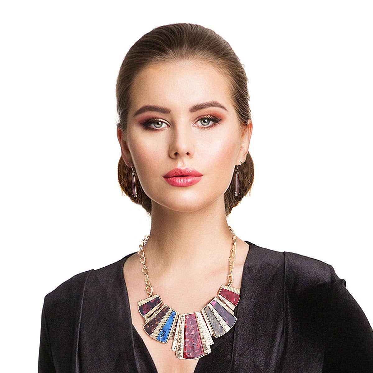 Get ready to glam up any outfit with Simply Marbleous! This gold chain necklace set features a graduated multi-colored marbled resin collar bib for a bold look. It's lightweight and comfortable to wear all day and perfect for adding a touch of whimsy to your wardrobe.