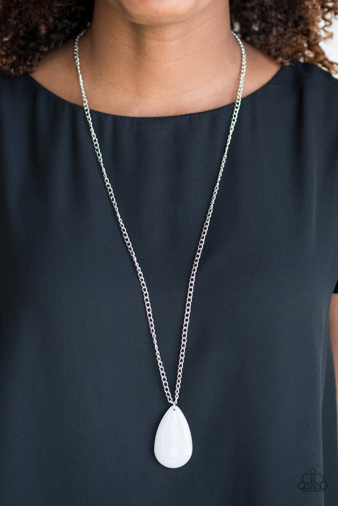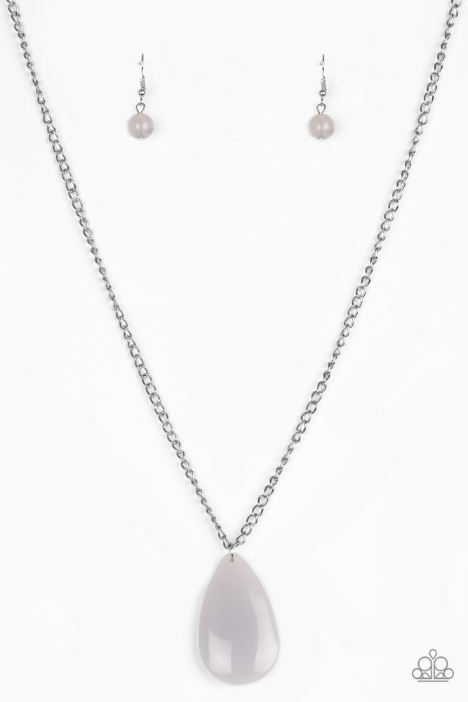 A neutral gray teardrop pendant swings from the bottom of a lengthened silver chain, adding a perfect pop of color to any outfit. Features an adjustable clasp closure.